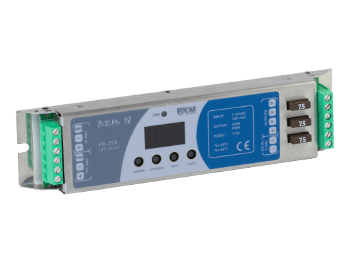 Le PX254 PXM est un driver intégrable de LED à tension constante piloté en DMX. Il commande 3 canaux jusqu’à 6A en 7 à 24V. il travaille en modulation 16 bits pour une excellente gradation flicker free. Il se configure avec un afficheur LCD et dispose de 18 programmes internes et d’une scène programmable. Le Driver peut fonctionner en mode DMX ou en autonomie. Il dispose de 7 modes DMX différents : RGB, RGB dimmer, Tuneable white, HSI……