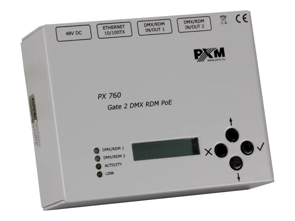 Le Gate 2 DMX RDM PoE est une passerelle permettant la conversion bidirectionnelle des protocoles Art-Net / sACN vers deux ports DMX512, et inversement vers Art-Net / sACN.